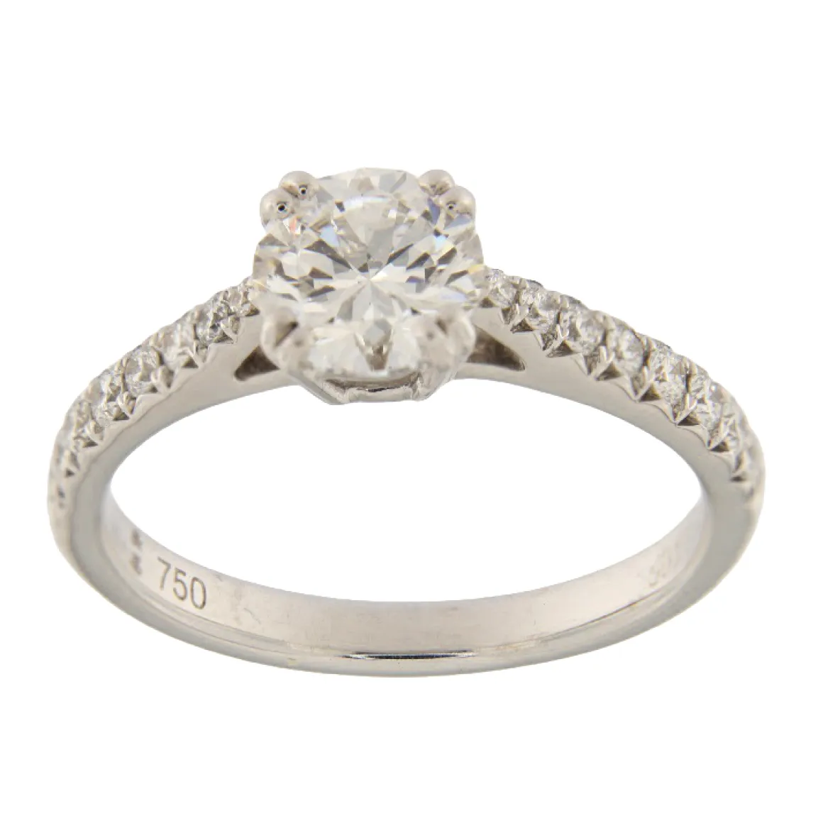- Diamante centrale taglio brillante. Peso: 1,00 ct. Colore D. Purezza: VVS1. Certificato: IGI 600375555