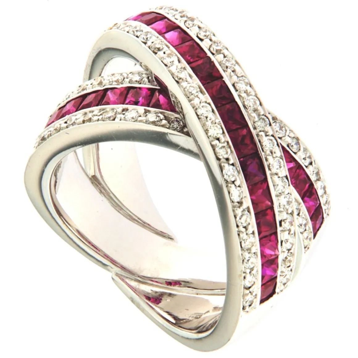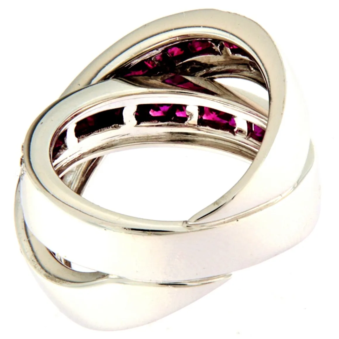 Guidetti | Anello a fasce incrociate in oro bianco con rubini e diamanti