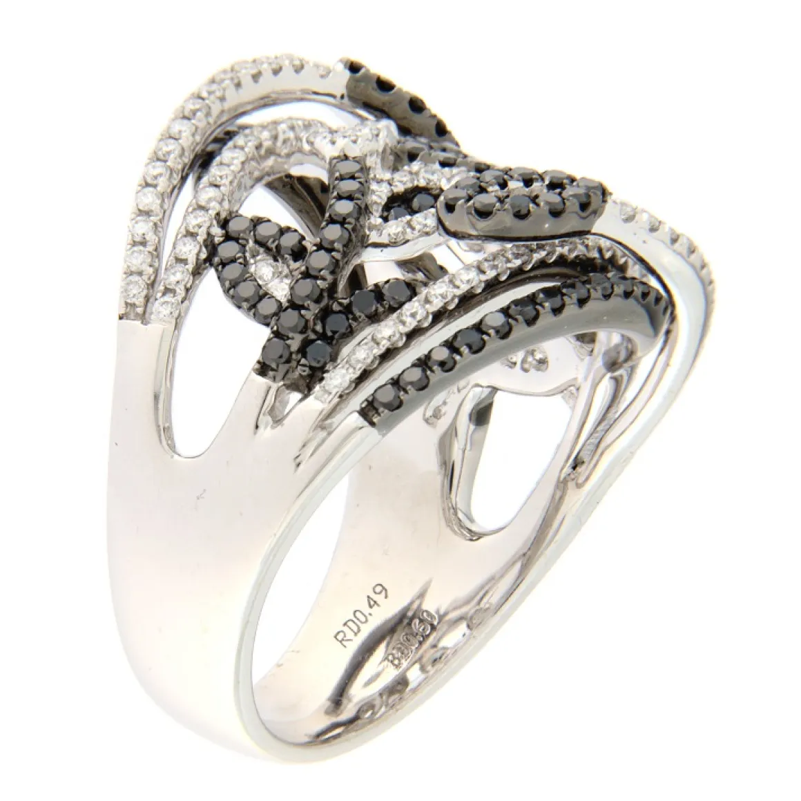 Guidetti | Anello in oro bianco con diamanti bianchi e neri taglio brillante