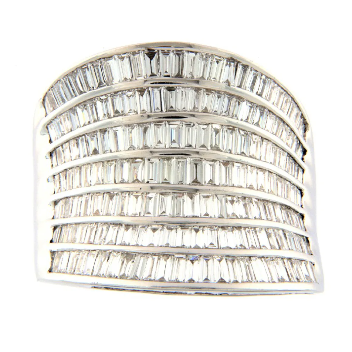 Guidetti | Anello in oro bianco con file di diamanti taglio baguette