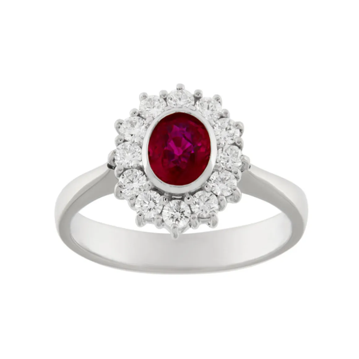Guidetti | Anello in oro bianco con rubino 0,84 ct e contorno di diamanti
