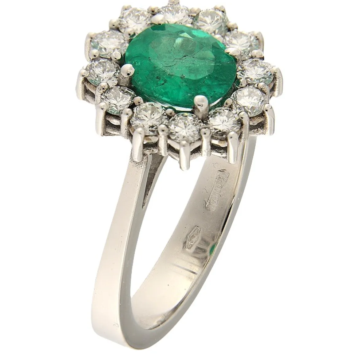 Guidetti | Anello in oro bianco con smeraldo 1,14 ct e diamanti 0,73 ct