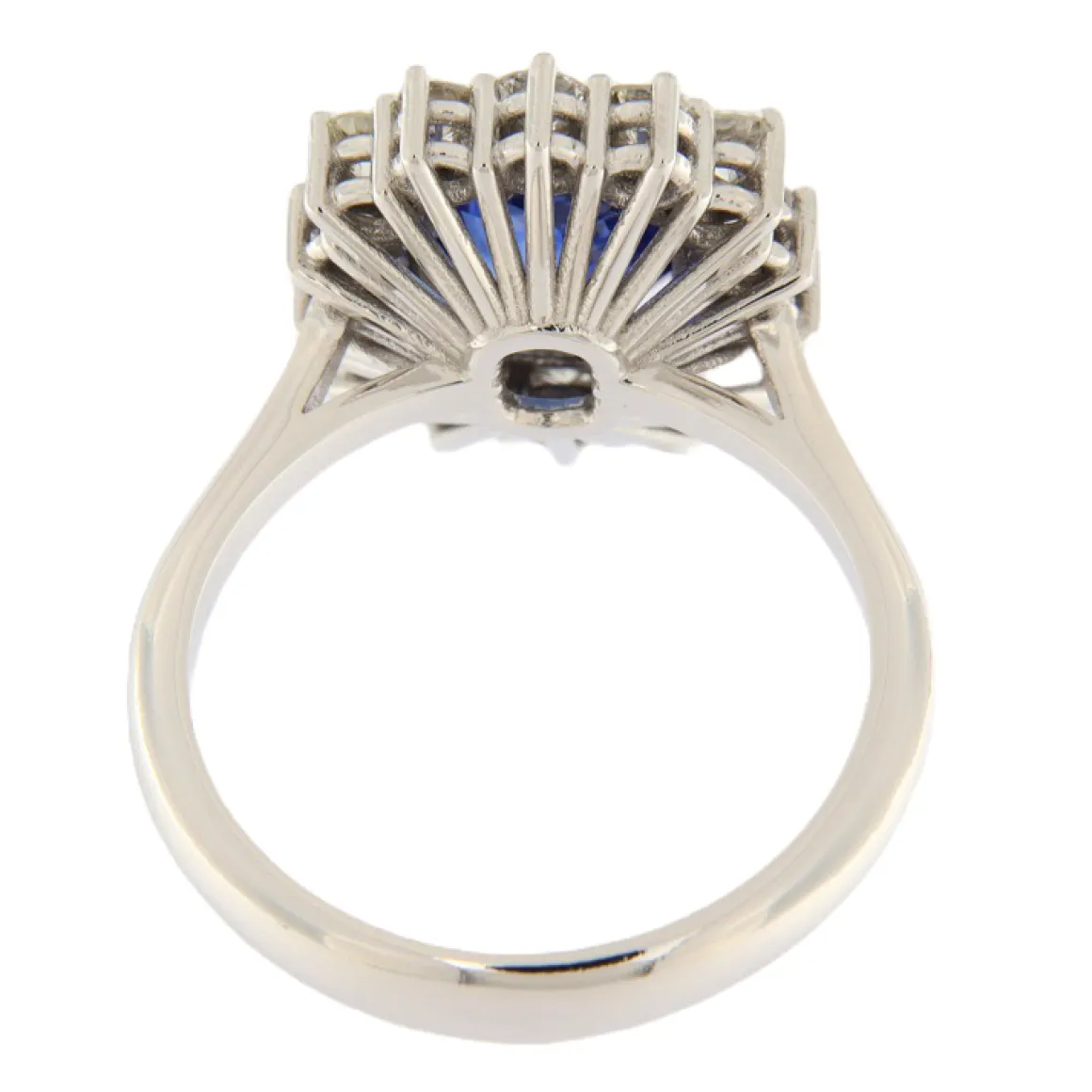 Guidetti | Anello in oro bianco con zaffiro 2,54 ct e contorno di diamanti