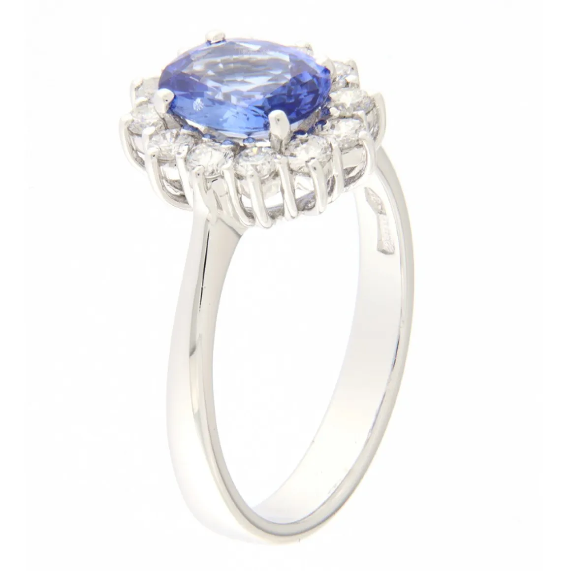 Guidetti | Anello in oro bianco con zaffiro e contorno di diamanti