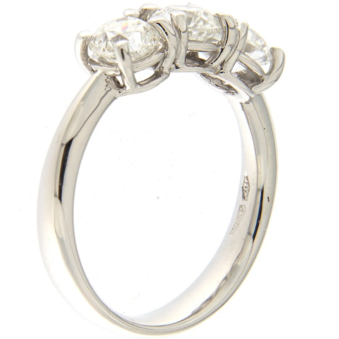 Guidetti | Anello trilogy in oro bianco con diamanti taglio brillante 1,51 ct certificati GIA