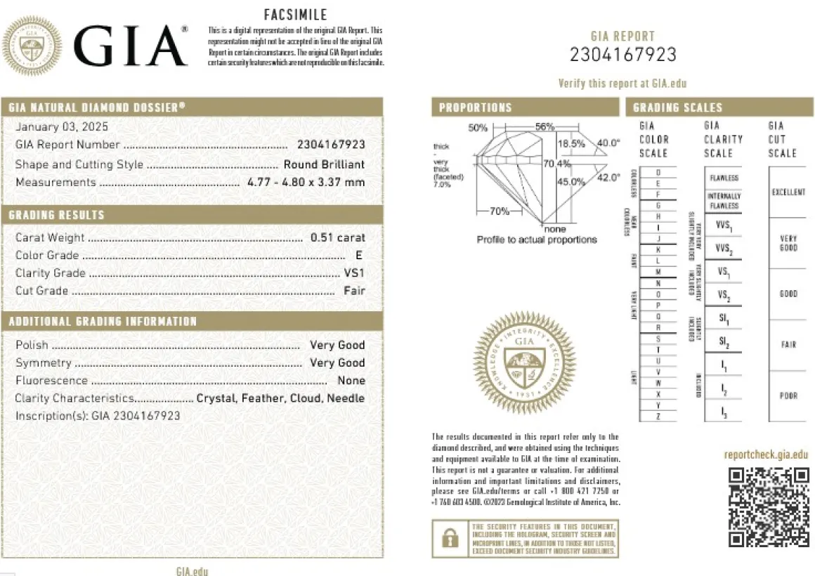 - Diamanti taglio brillante. Peso complessivo: 1,51 ct. Colore: E. Purezza: VS1. Con 3 certificati GIA.