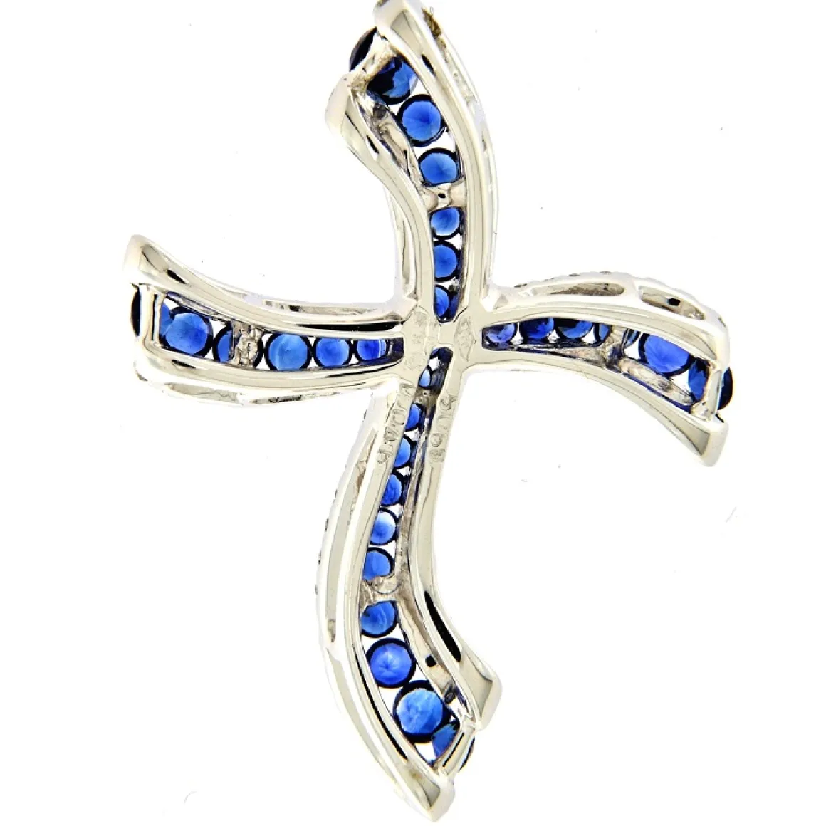 Guidetti | Ciondolo a croce in oro bianco con diamanti taglio brillante e zaffiri