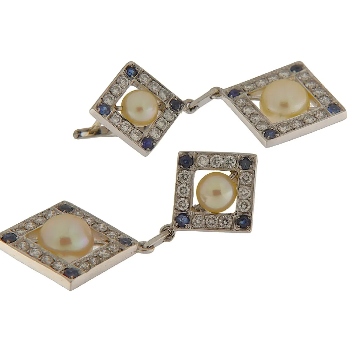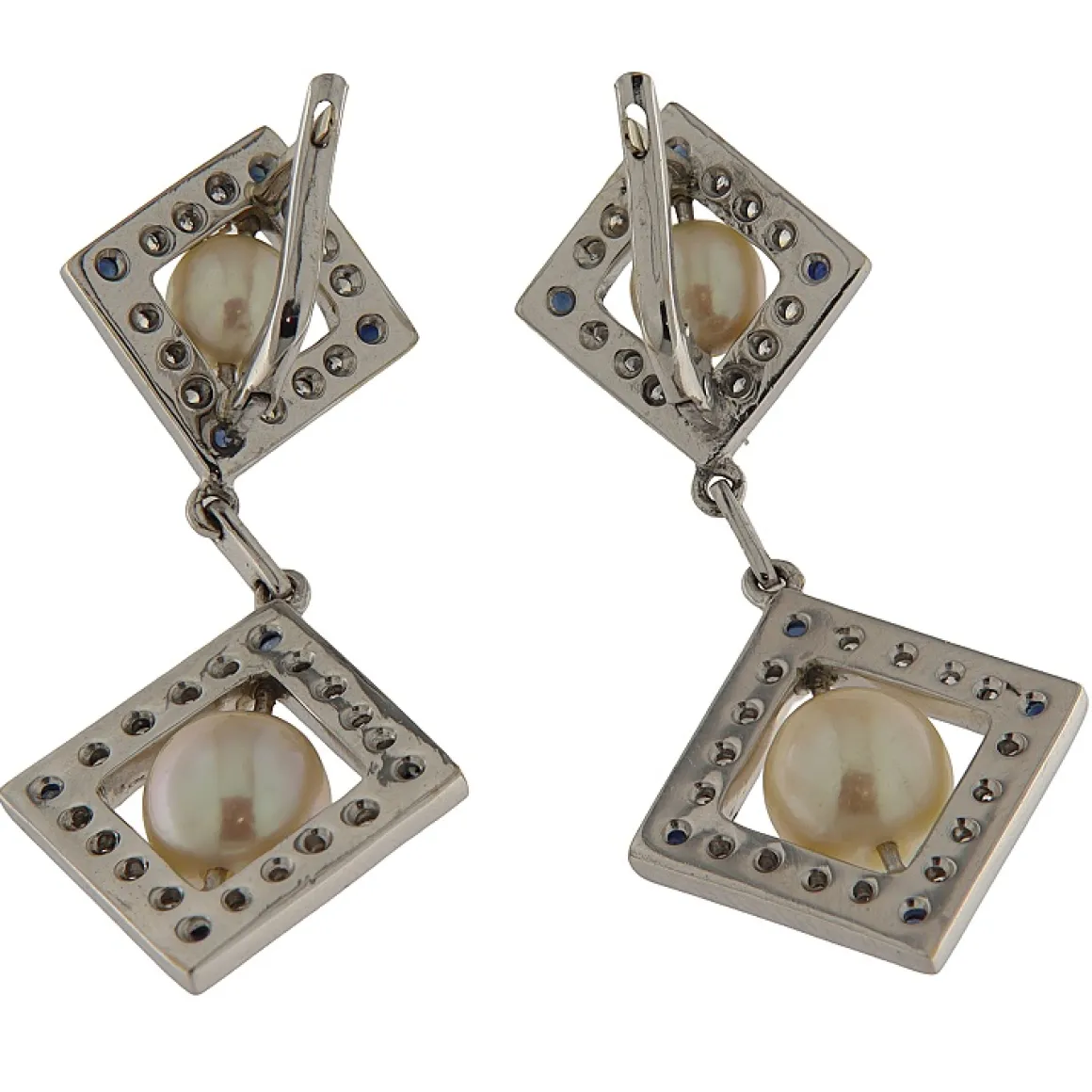 Orecchini pendenti in oro bianco con diamanti e perle