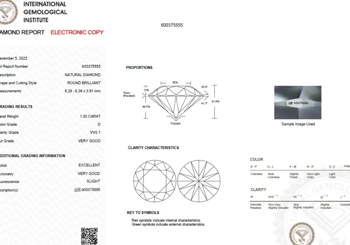 - Diamante centrale taglio brillante. Peso: 1,00 ct. Colore D. Purezza: VVS1. Certificato: IGI 600375555