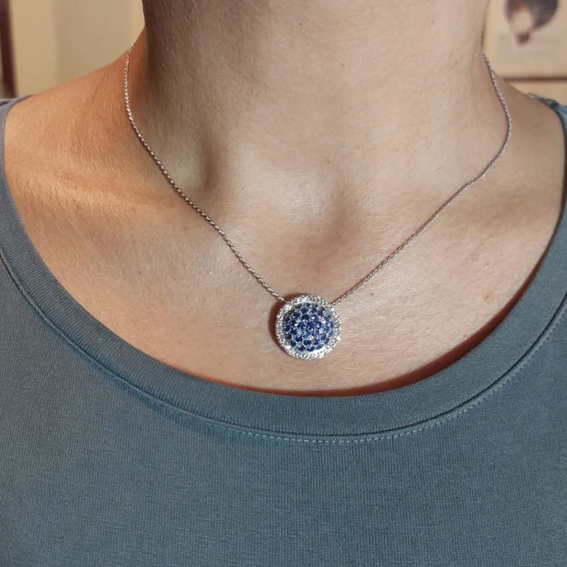 Girocollo in oro bianco con zaffiri e brillanti