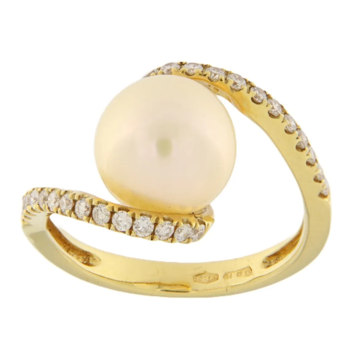 Guidetti | Anello contrarié in oro giallo con perla gold e diamanti
