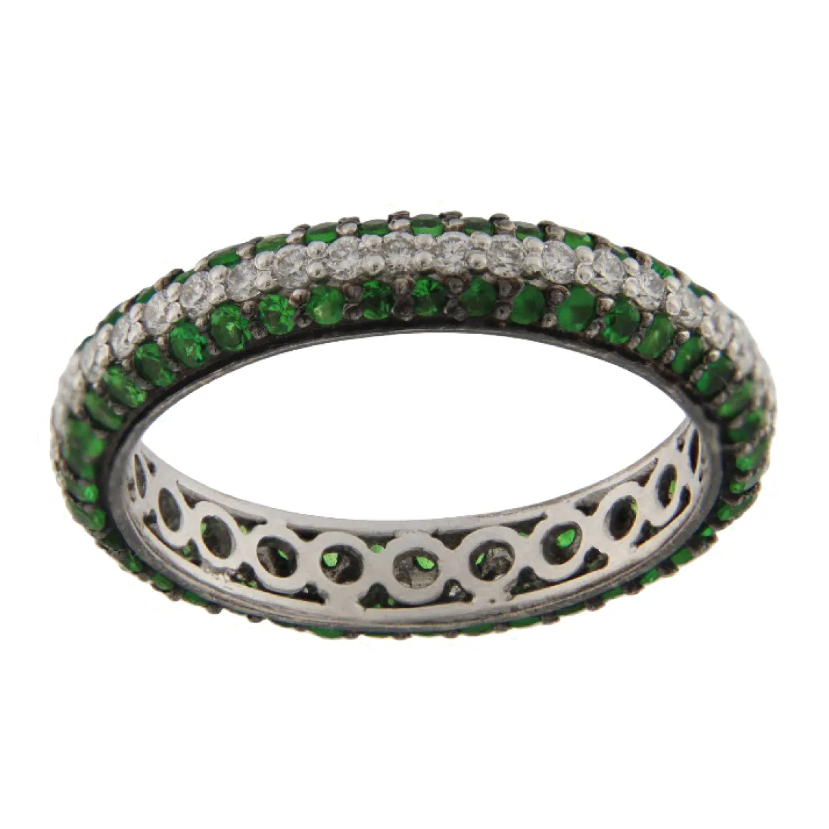 Guidetti | Anello eternity in oro bianco con diamanti e tsavoriti