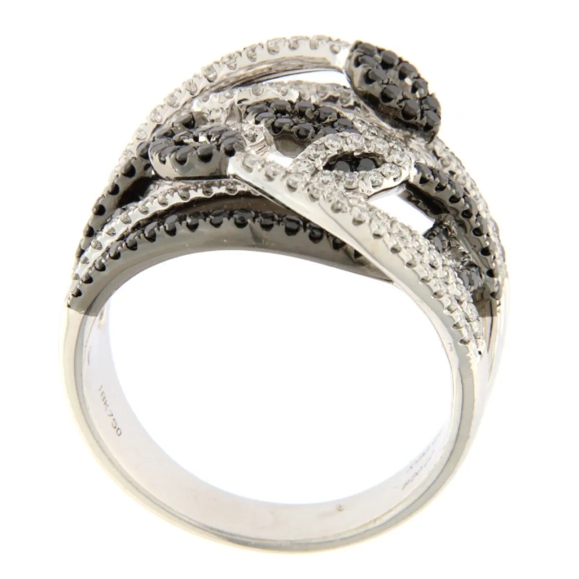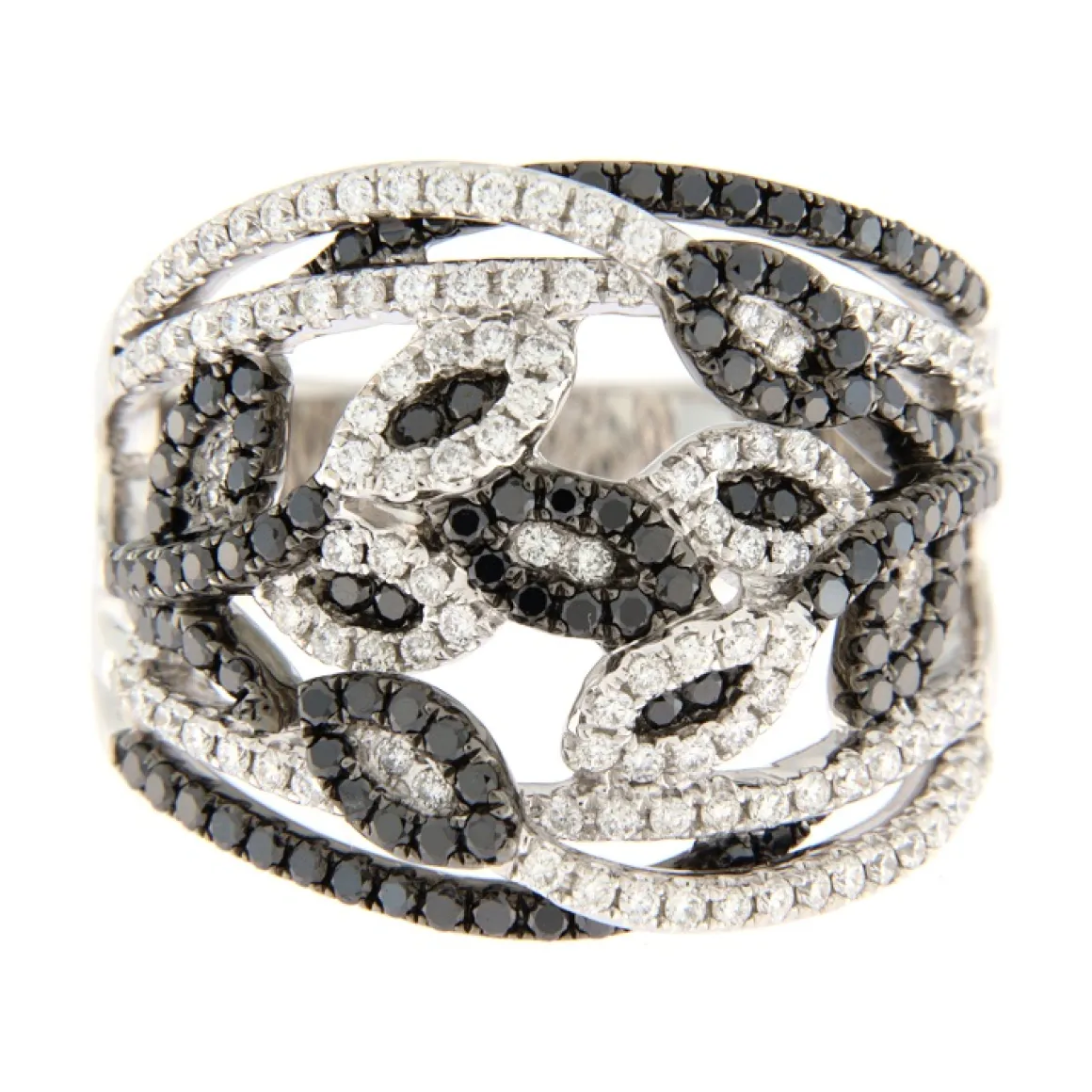 Guidetti | Anello in oro bianco con diamanti bianchi e neri taglio brillante