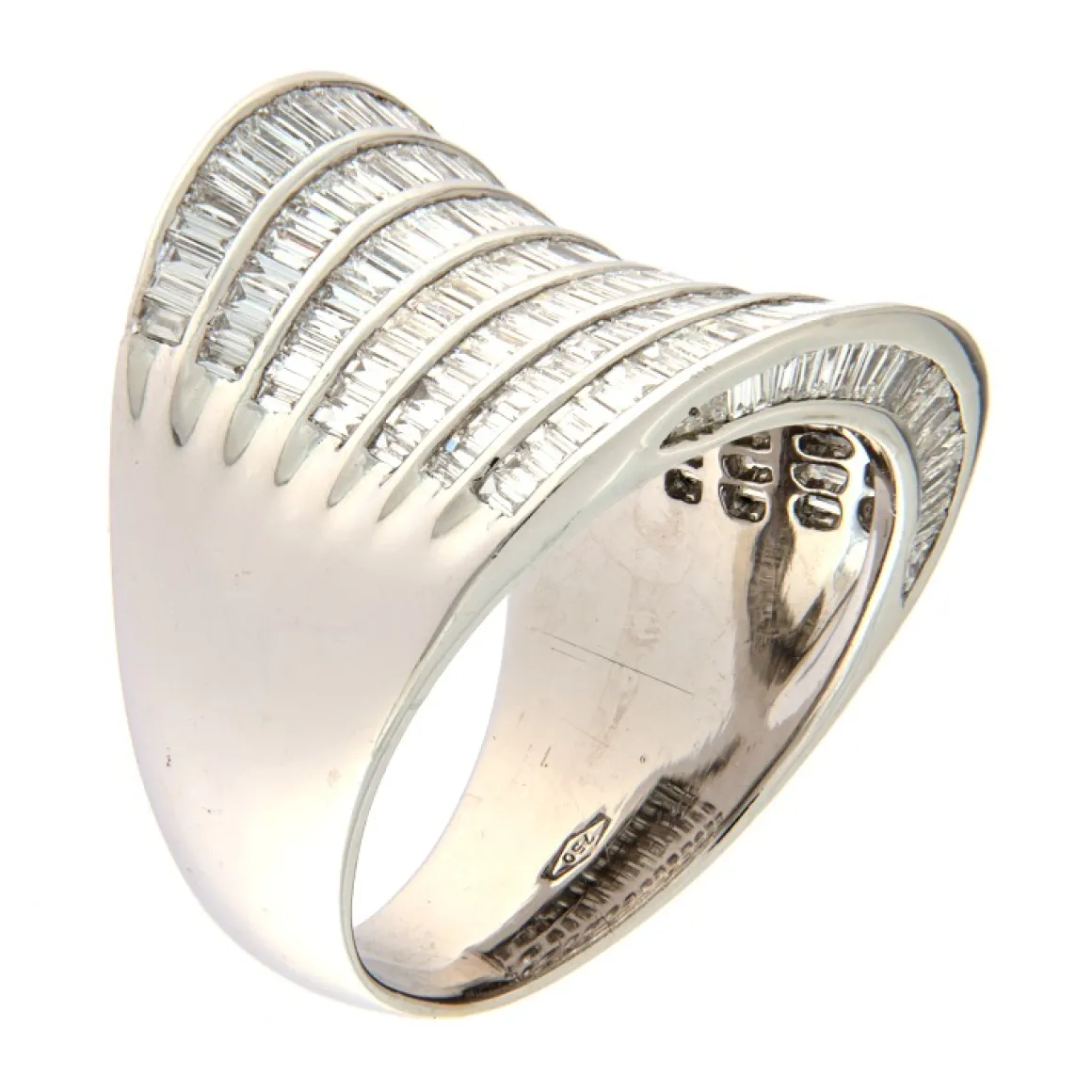 Guidetti | Anello in oro bianco con file di diamanti taglio baguette
