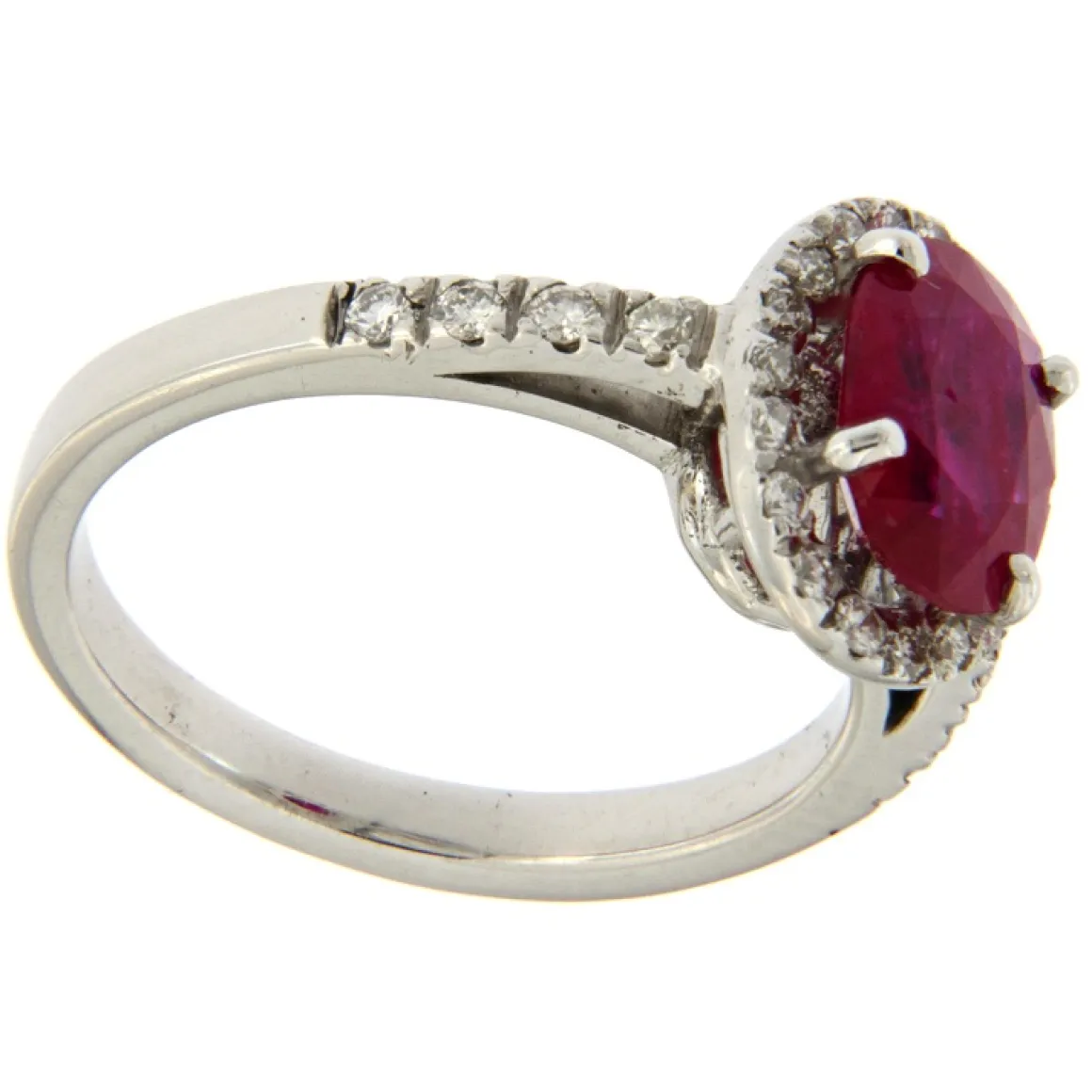 - Corindone naturale varietà rubino: 1,73 ct. Taglio: ovale. Certificato Istituto Gemmologico Italiano (IGI)