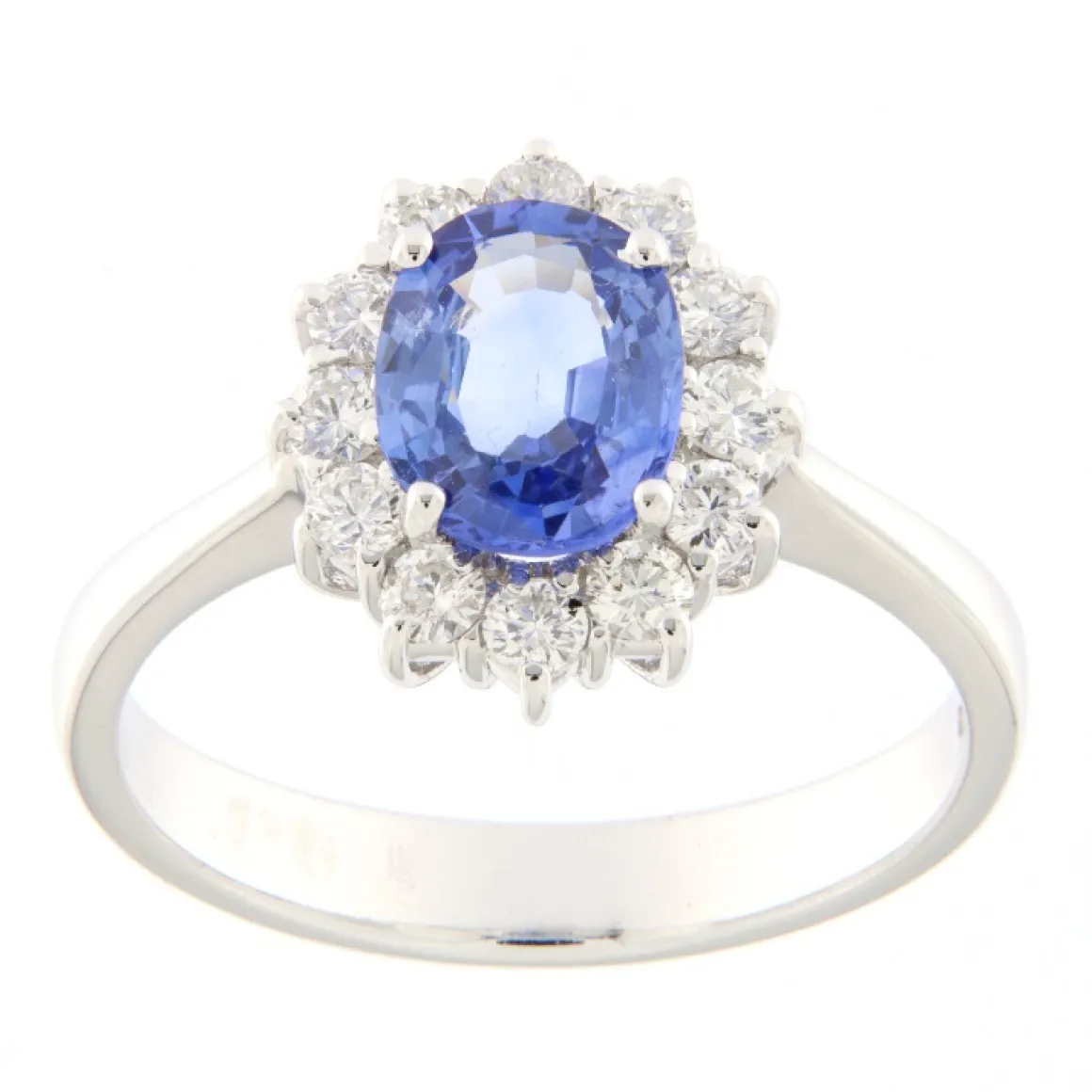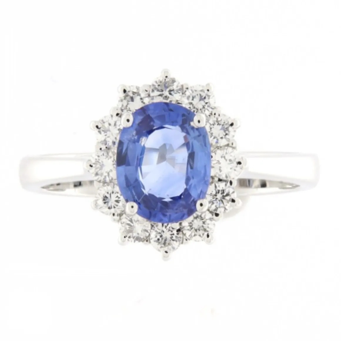 Guidetti | Anello in oro bianco con zaffiro e contorno di diamanti