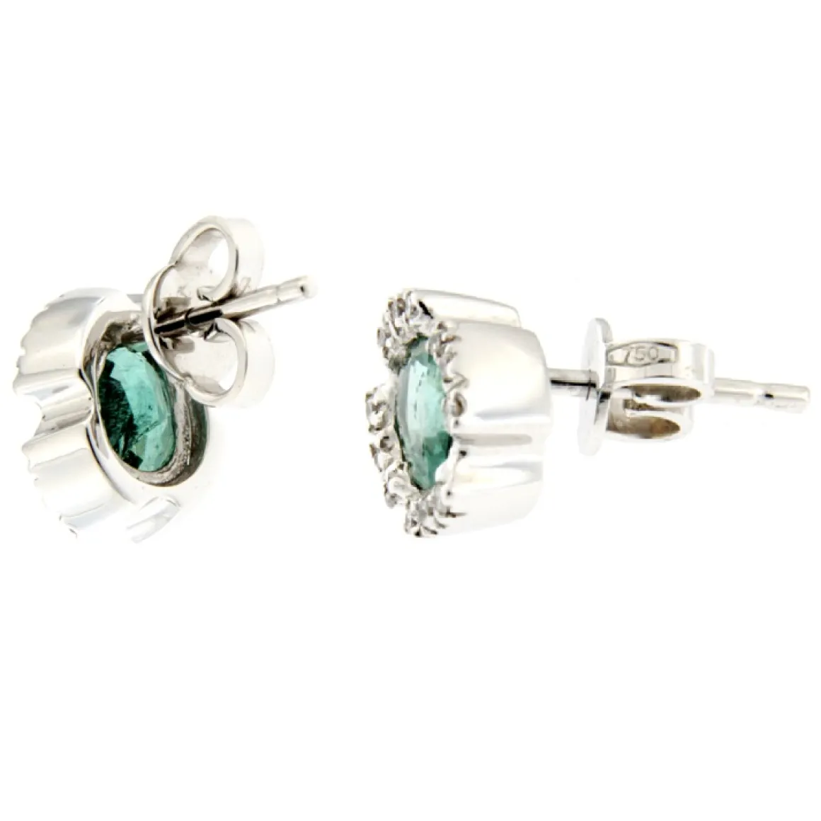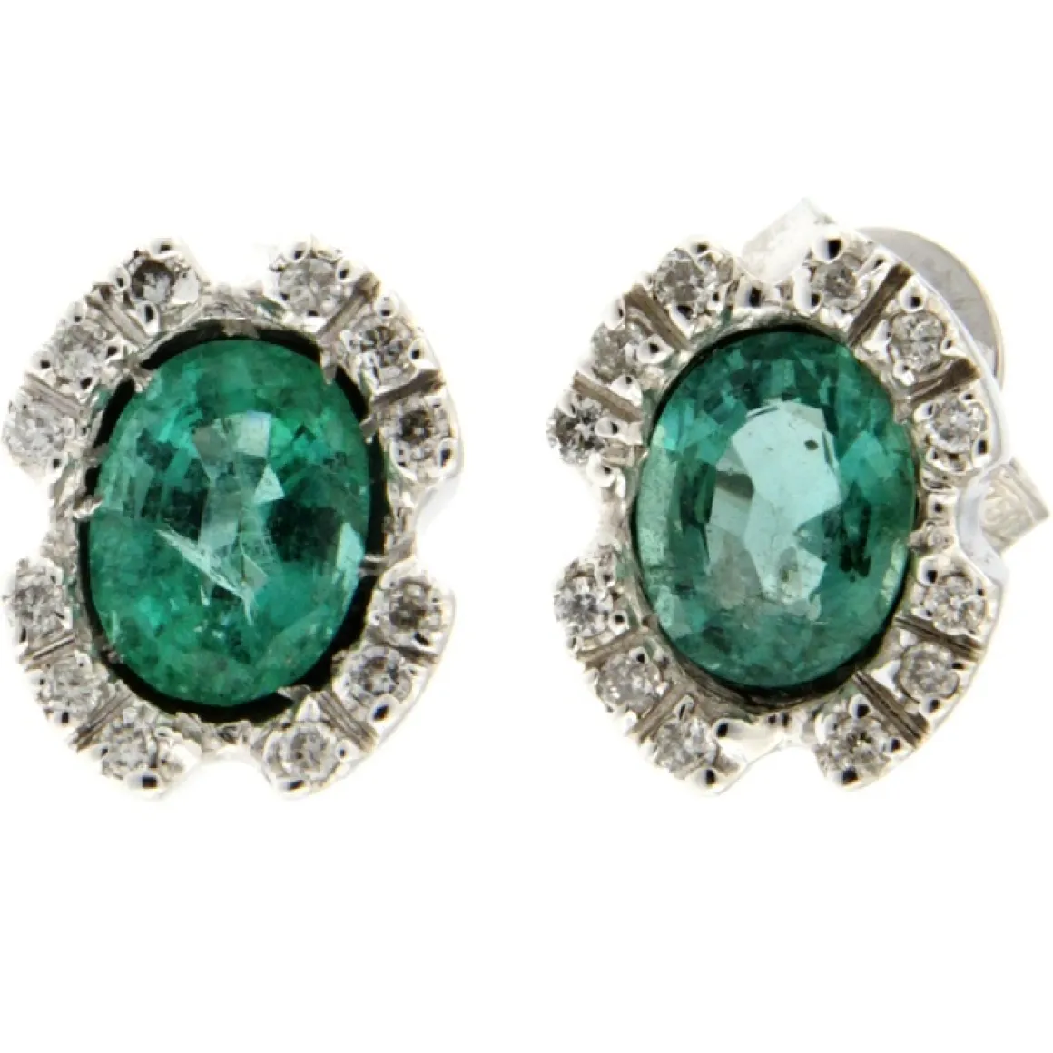Orecchini in oro bianco 750/1000 con diamanti taglio brillante e smeraldi