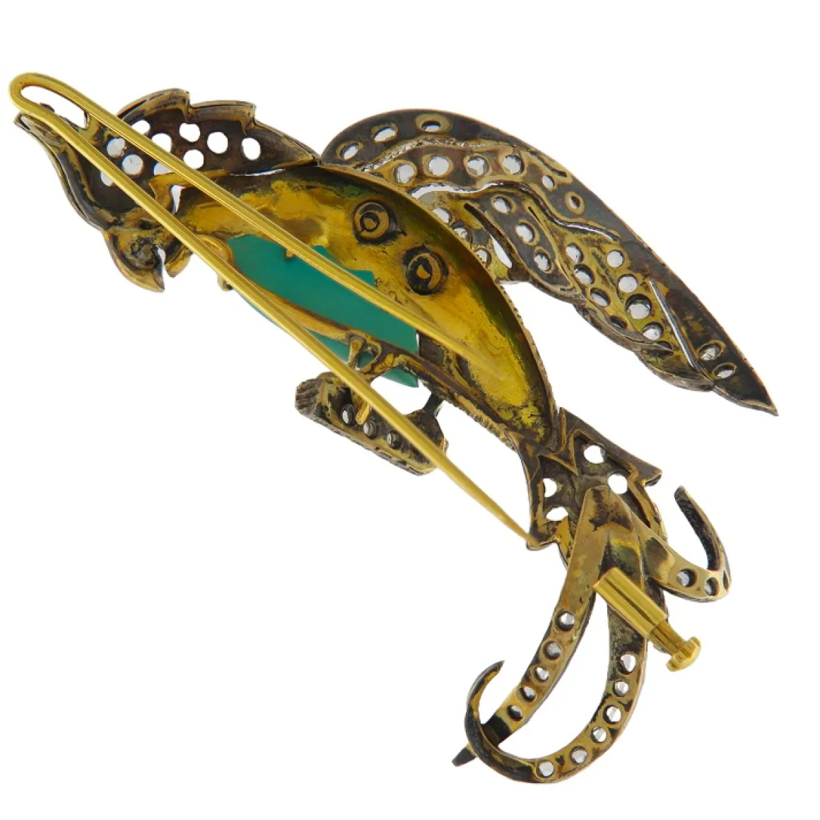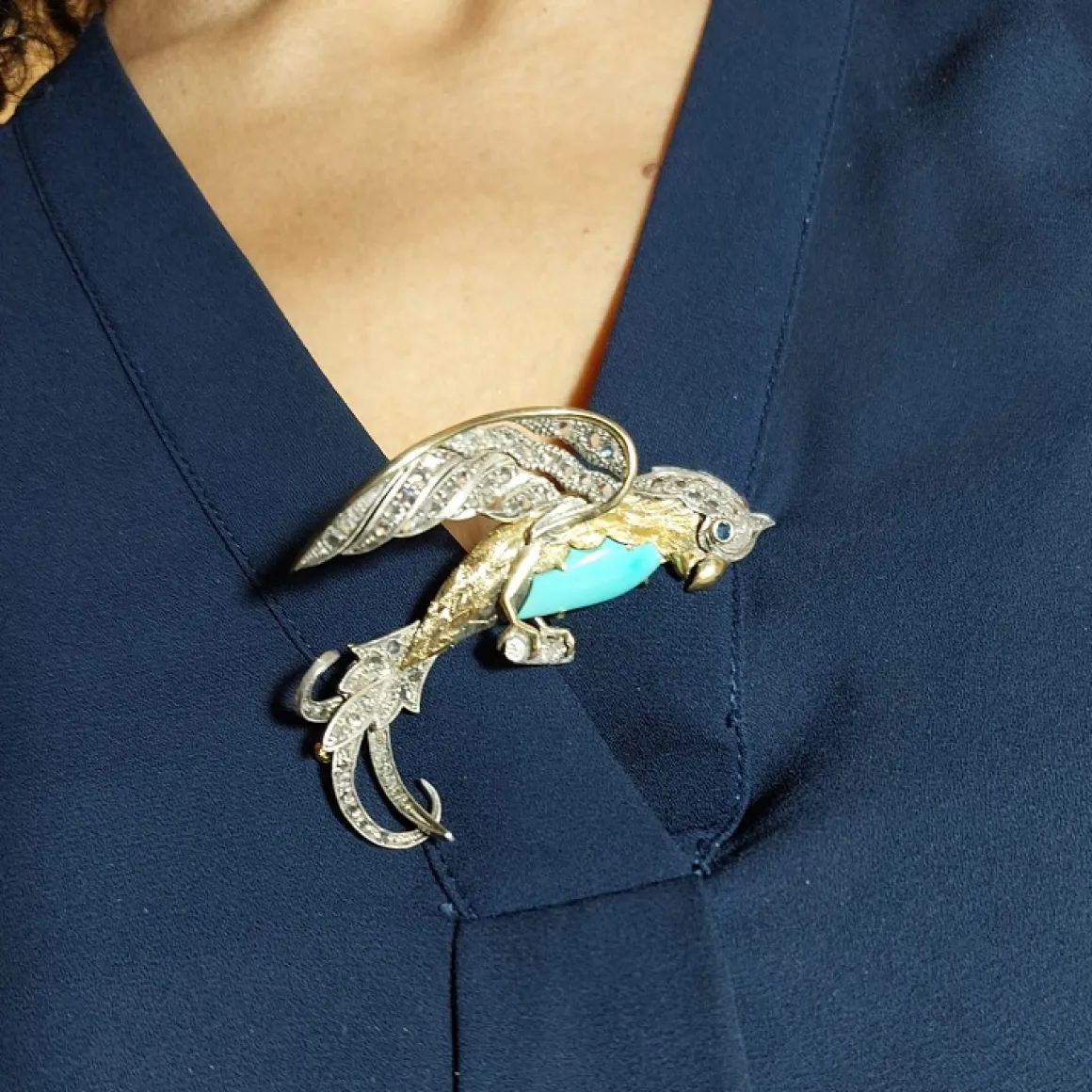 Guidetti | Spilla Pappagallo stile antico in oro, argento e diamanti